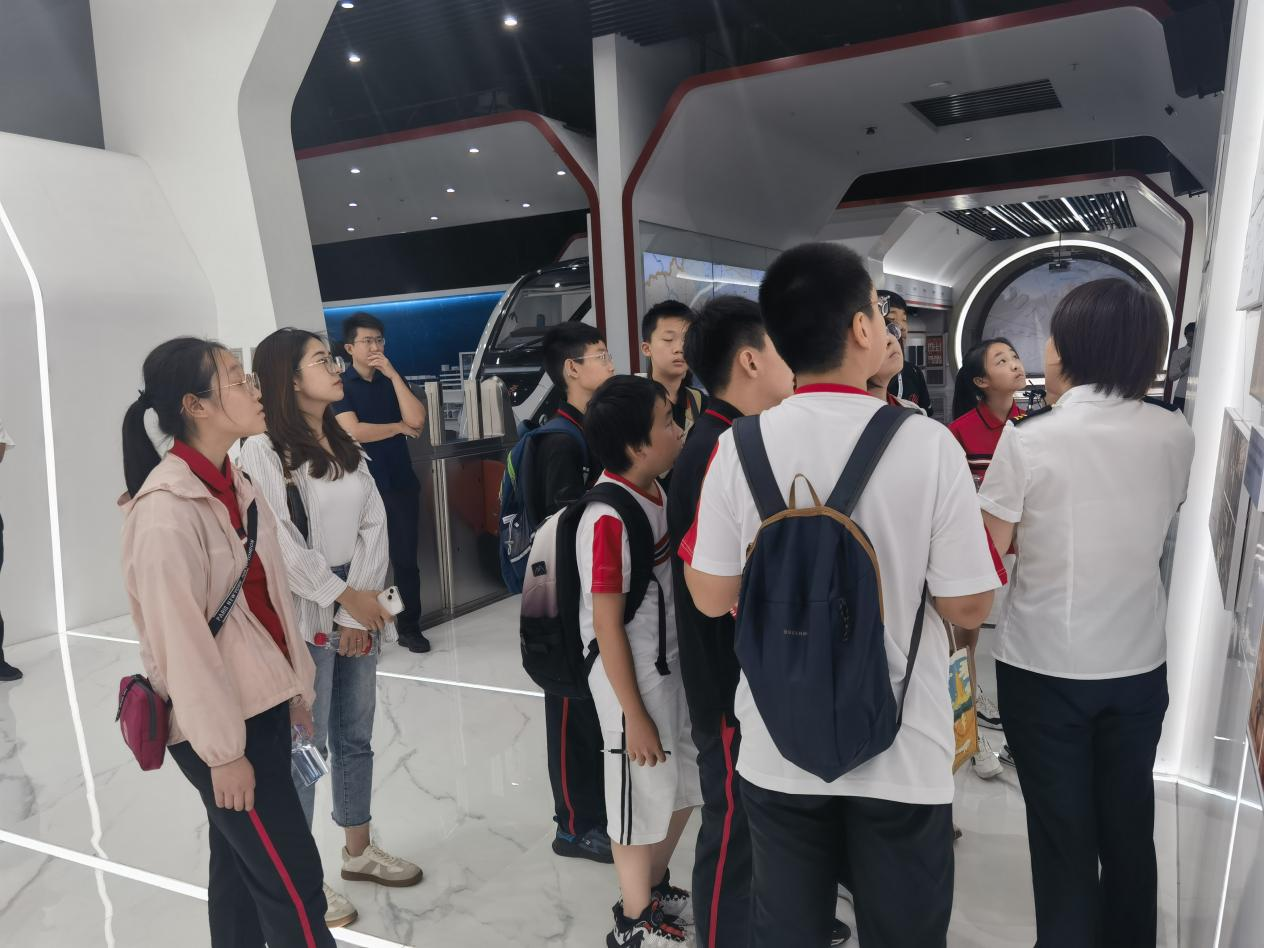 在講解人員的帶領(lǐng)下,師生們首先來到一層軌道交通展廳。一幅幅老照片、一張張地鐵票卡、一份份文件,以及觸摸屏的動態(tài)展示,讓師生們系統(tǒng)直觀地學習了北京軌道交通的發(fā)展歷史和相關(guān)知識;真實的地鐵列車車頭、支持“刷掌”的閘機、市域列車模型、軌道洞體的斷面模型、副中心綜合交通樞紐剖面模型等一件件物品,大大激發(fā)了師生們對蘊藏其中的科學技術(shù)的興趣。隨后,師生們來到四層參觀廳,映入眼簾的是使用面積近2400平方米、亞洲最大的軌道交通指揮調(diào)度大廳,透過玻璃幕墻,師生們被眼前壯觀的景象所深深吸引。通過講解人員細致的講解,師生們了解了北京軌道交通調(diào)度指揮運營系統(tǒng),紛紛感嘆軌道交通運營的“神奇”“高科技”,并爭先恐后向講解人員提問,了解職業(yè)特點,了解AI在行業(yè)的應用,主動把軌道交通調(diào)度指揮職業(yè)與自身初高中所需要學習的知識體系結(jié)合起來。